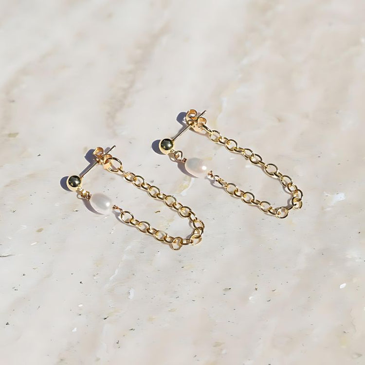 Pearl Chain Earrings, that you won't ever want to take off. Perfect for earring layering, or on their own.