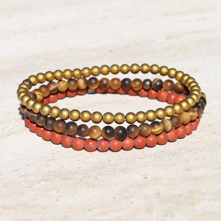 - Bracelets made with genuine Red Jasper, Hematite, and Tiger's eye.