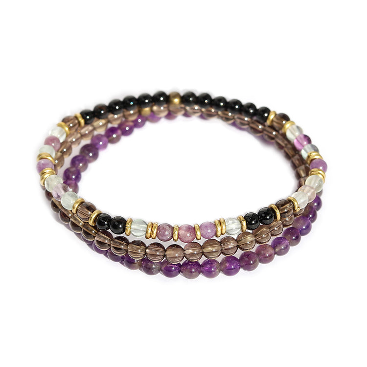 "Protection and Good Energy" Black Tourmaline Smoky Quartz and Amethyst Delicate Bracelet Stack