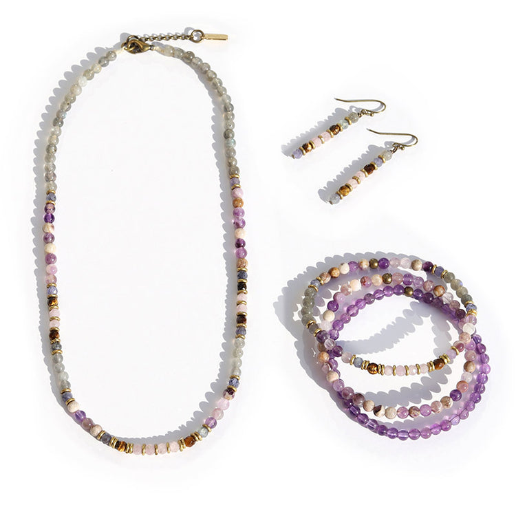 "Healing and Serendipity" Chevron Amethyst and Kunzite Jewelry Bundle