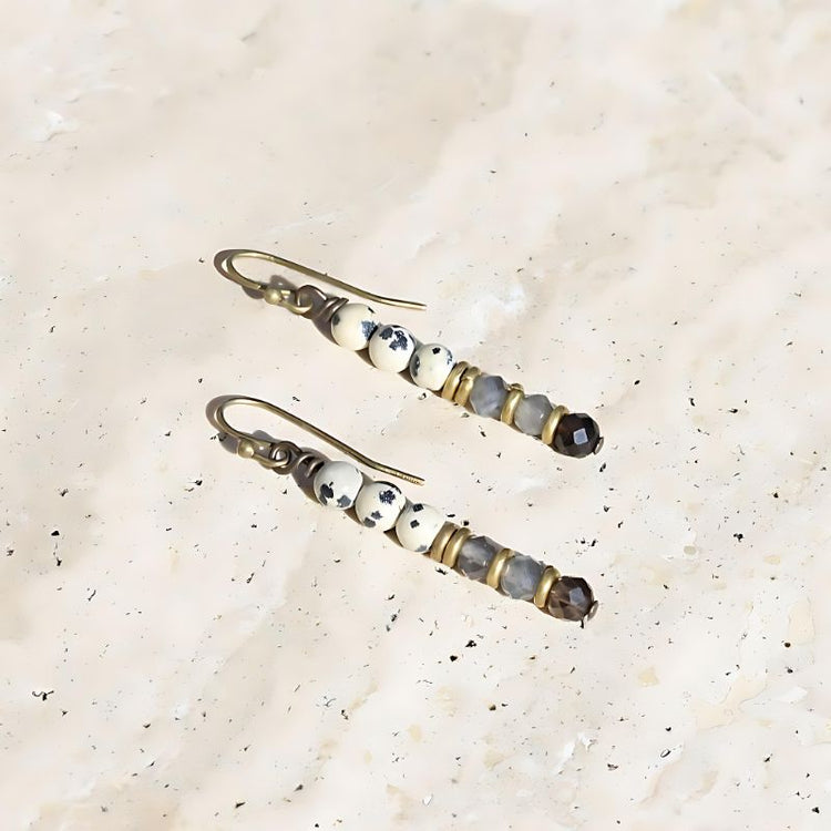 - Made with genuine dalmatian jasper, labradorite and smoky quartz.