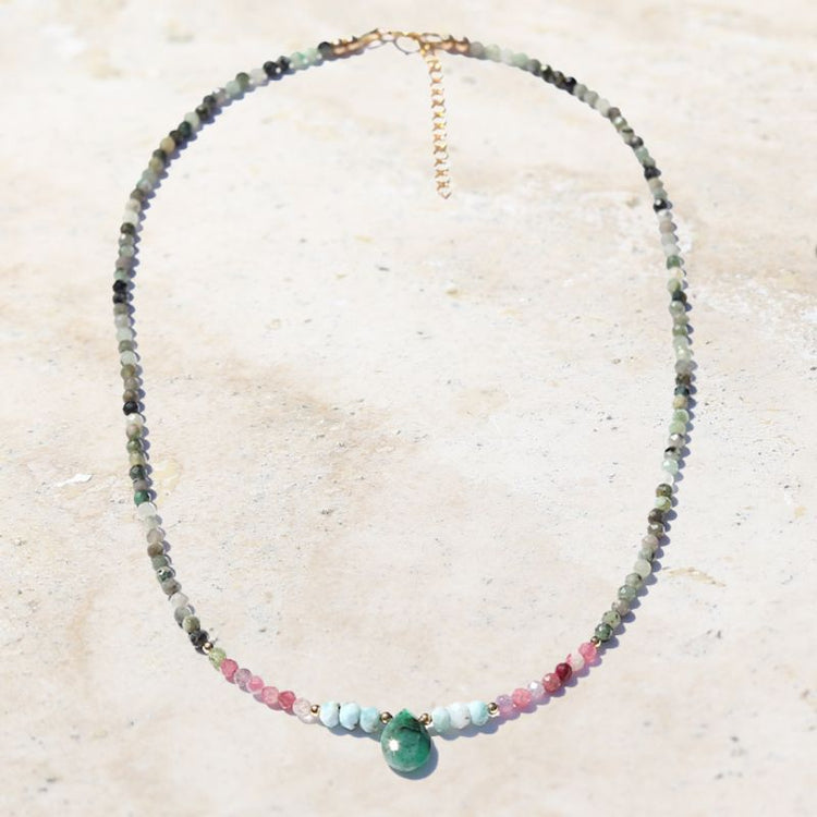 Exquisite delicate necklace made with high-quality emerald and larimar.