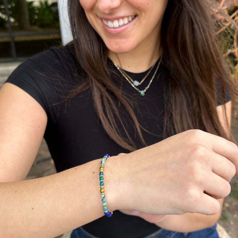 - Made with genuine lapis lazuli, apatite, and African turquoise.