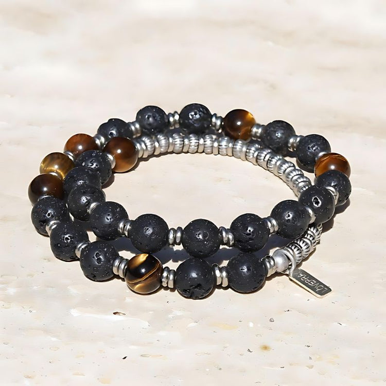 Lava Rock and Tiger's Eye Men's Wrap Bracelet, Solar Plexus Chakra Bracelet