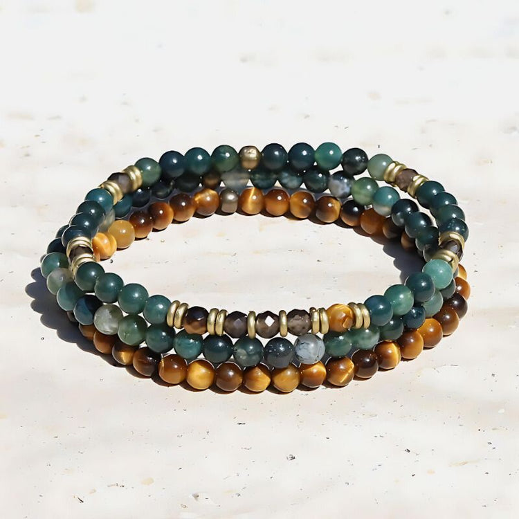 "Abundance & Prosperity" Moss Agate and Smoky Quartz Delicate Bracelet Set