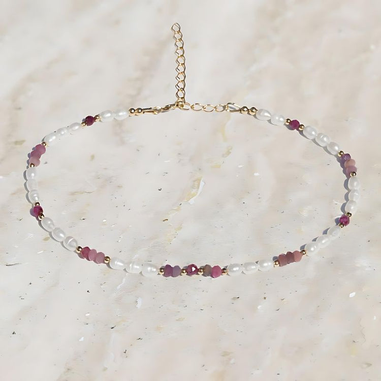 Our Pearl and Ruby Luxury Anklet is a perfect combination of elegance and luxury that will elevate your style! This anklet combines the breathtaking beauty of real freshwater pearls with the raw allure of genuine rubies