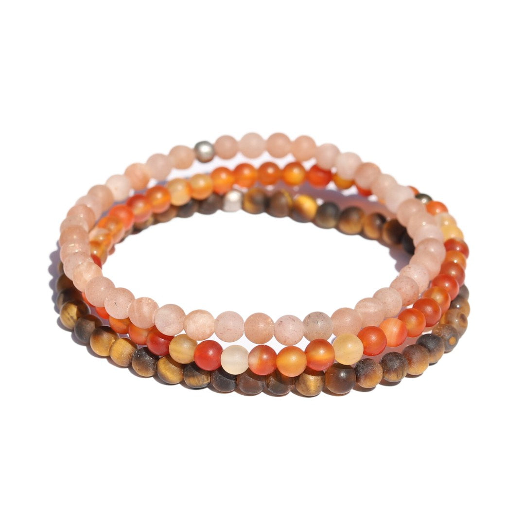 "Prosperity" Matte Sunstone Carnelian & Tigers eye Bracelet Set