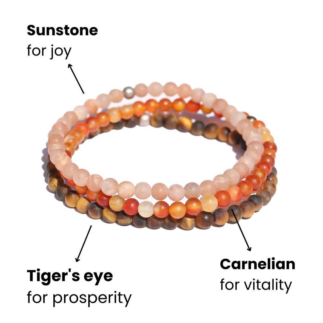 - Made with genuine Sunstone, Carnelian & Tigers eye gemstones.